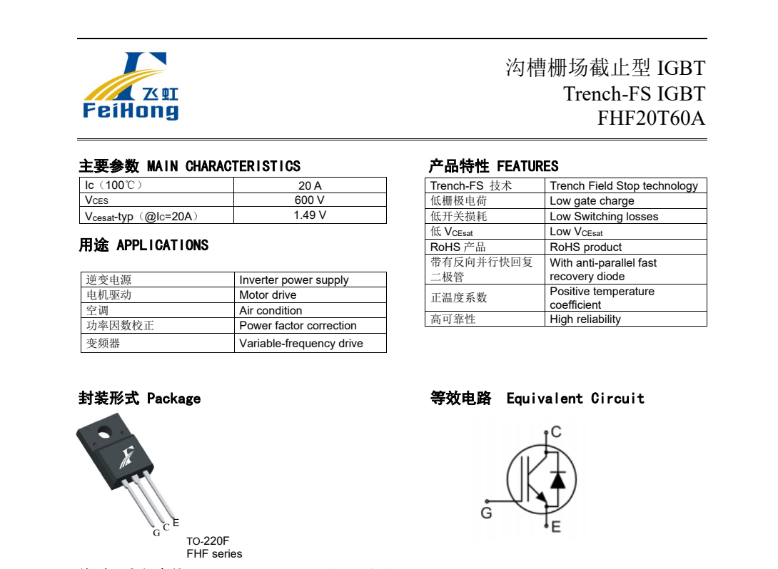 • 變頻器常用IGBT:FHF20T60A型號(hào),電機(jī)驅(qū)動(dòng)電路的優(yōu)選IGBT單管。 2023-07-13
